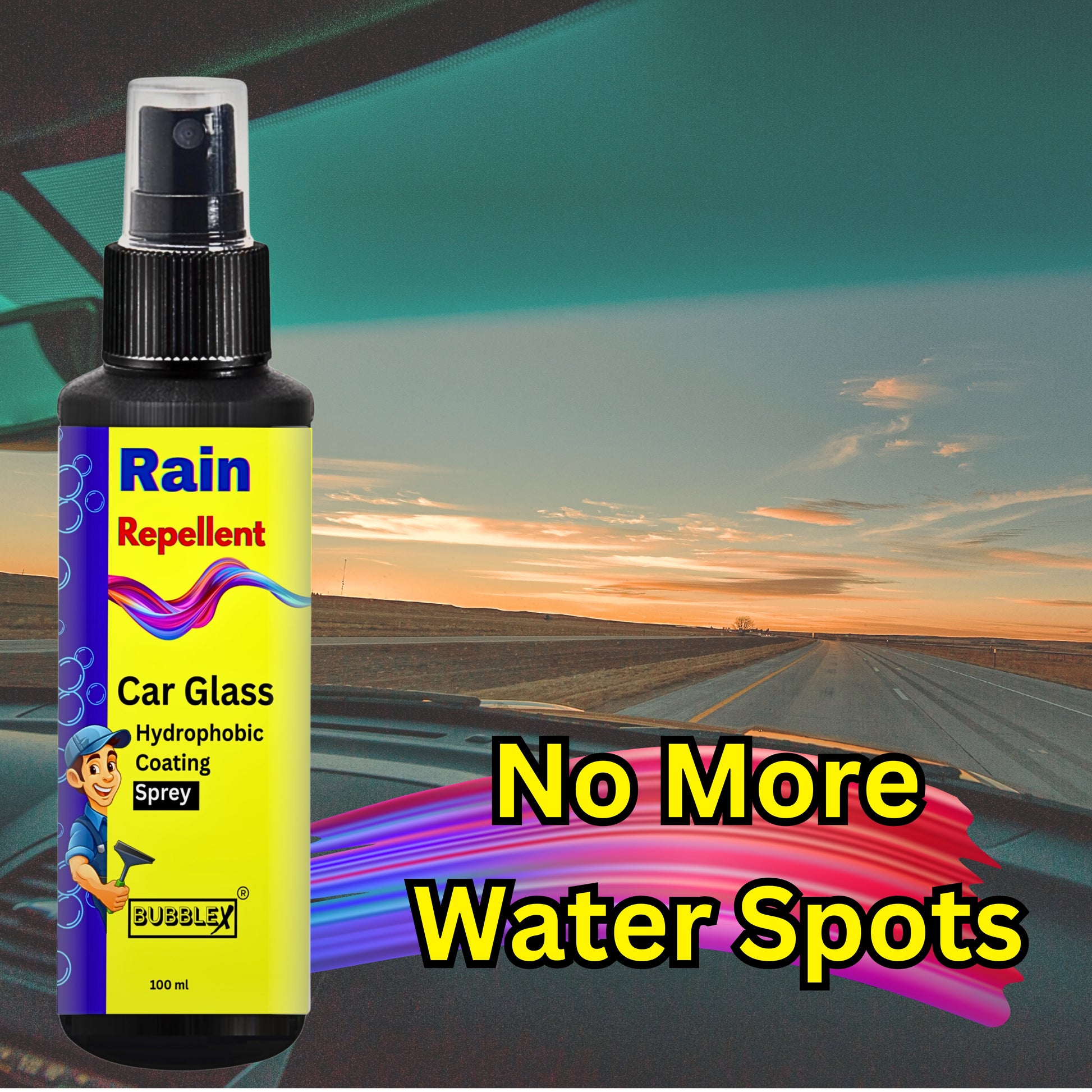 Stay safe and drive clear with BubbleX Rain Repellent, your ultimate solution for rainy weather. Specially formulated to create an invisible, hydrophobic coating on glass surfaces, it repels rain, improves visibility, and enhances driving safety.